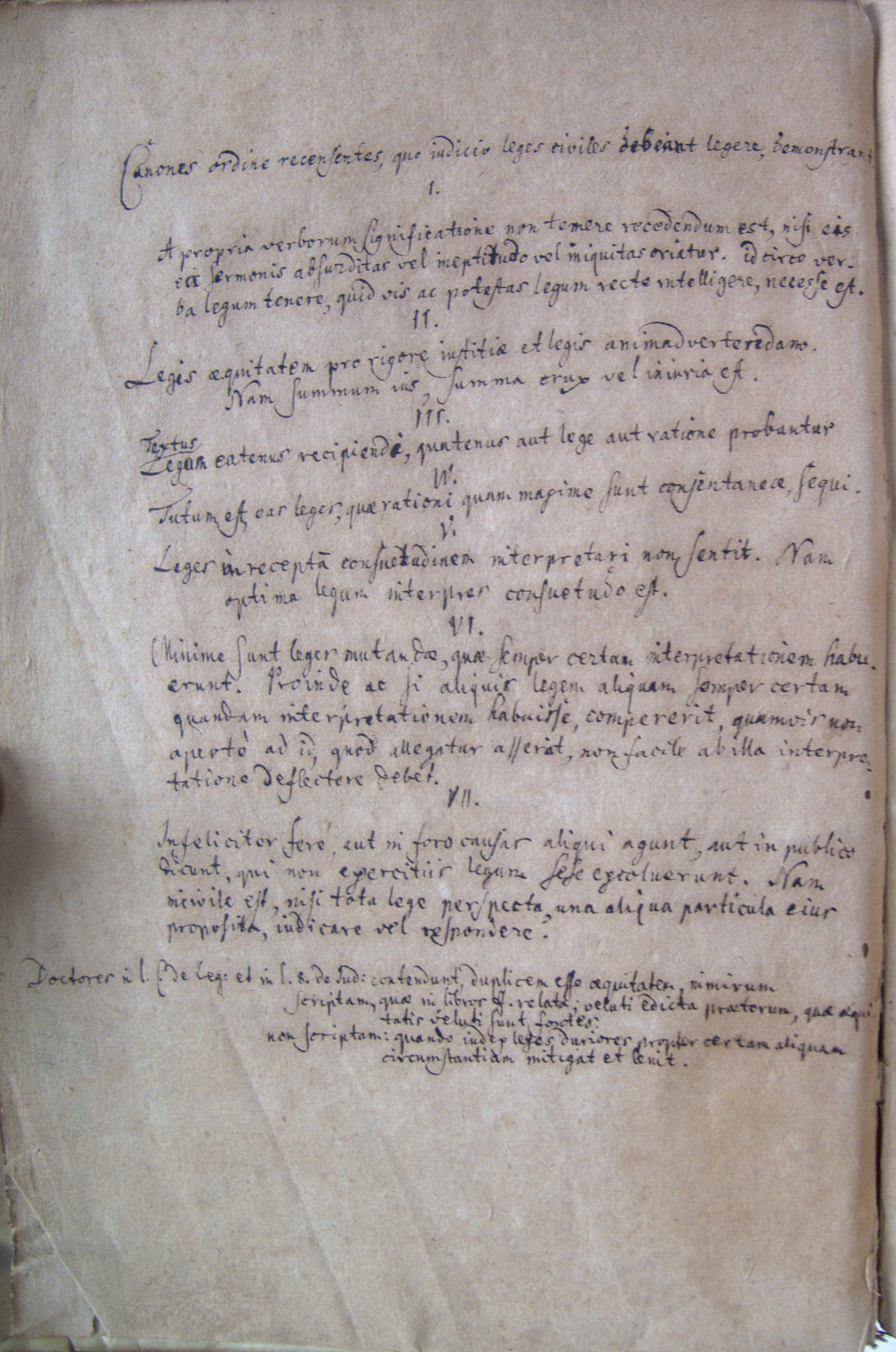 Initially taught at the University in Bologna and circulated among Italian merchants, Godefroy’s Geneva edition is recognized as the first proper Western European edition, and was, in fact, the first to print these laws under the title Corpus Juris Civilis. Reading the Preface, written by Godefroy himself (or at least claiming to be), was a true challenge of my very intermediate French skills from high school, but I was able to glean the scholarly intent of the edition. It was intended “pour cours de droit civil” (for classes in civil law), presumably, and not surprisingly, at the University in Geneva where Godefroy taught. The title page left me with a few questions about publication and previous ownership, claiming to be “ex typographia Iacobi Stoer”. Searches on Google, World Cat, and Open Library turn up publications under Stoer’s name, all from the 17th century, such as a French dictionary and a “General Inventory of the History of France”, but no peripheral information.