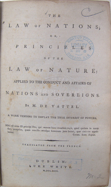 Emer de Vattel, The Law of Nations (Dublin: 1792, L. White).