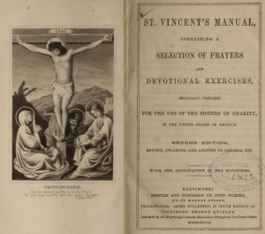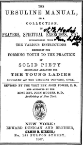 These devotional manuals were highly adaptable books that could be used by a variety of Catholic audiences. All found them a helpful guide to the Catholic Mass, celebrated in Latin. The laity could use them for fraternal organizations or within their own homes. Parish priests could use them within their schools, as could the educators at convents or seminaries. The books would have been helpful for creating a sense of Catholic identity, providing a set of prayers and customs to be carried out in a systematic way. When a priest was not readily available – which was the case for many new parishes which shared a priest with nearby congregations – the books could provide faith instruction outside the walls of the church. The institutional Church backed the publication of these devotional manuals, as Dunigan’s 1857 version of The Ursuline Manual shows approval from the powerful Archbishop John Hughes of New York. All of these reasons likely helped the Ursuline Manual and St. Vincent’s Manual become two of the most popular works in 1849.