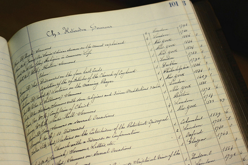 Page of the original St. Ignatius Library Catalogue (c. 1878)